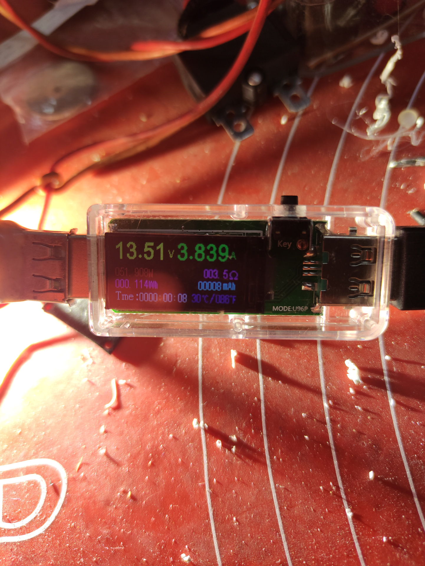 Поработала 15 минут. Температура возле кристалла 86'С. Мощность 50,6 Ватт.