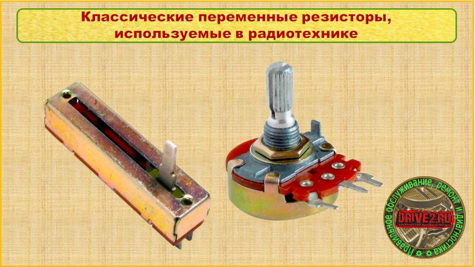"Такие резисторы чаще всего устанавливались, например, при поиске волн на радио или регулировке громкости динамиков на магнитофоне и т.п." — для настройки частоты на старых приемниках без цифровых тюнеров используется конденсатор переменной ёмкости)))