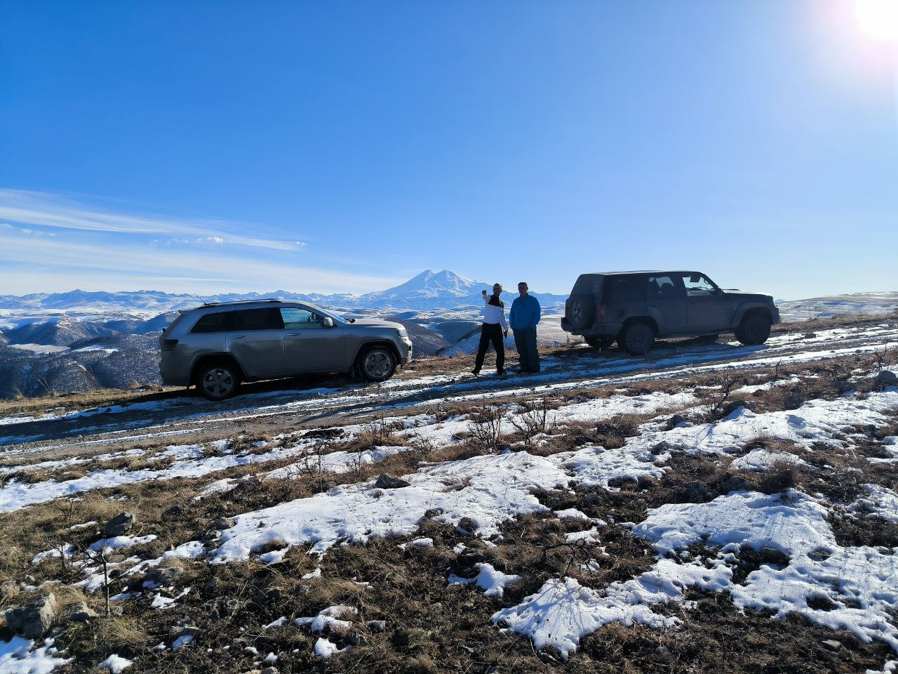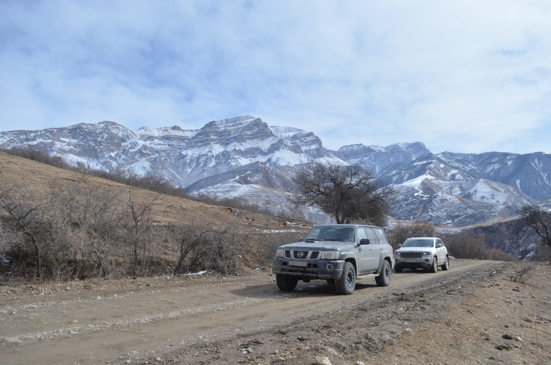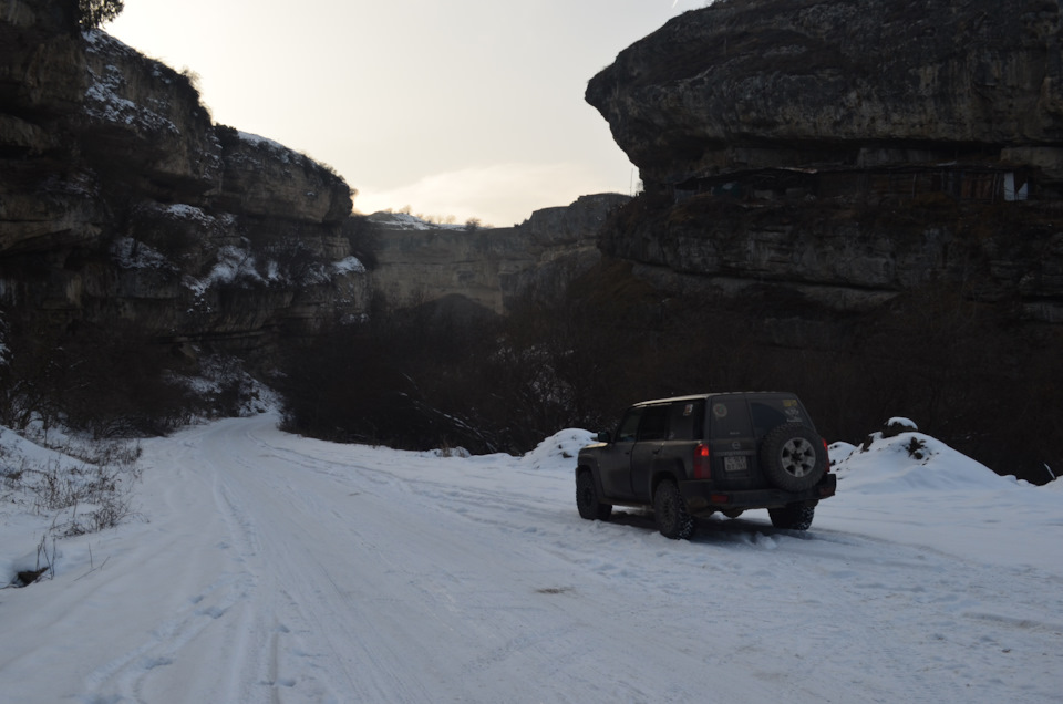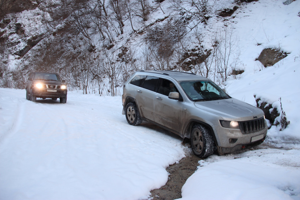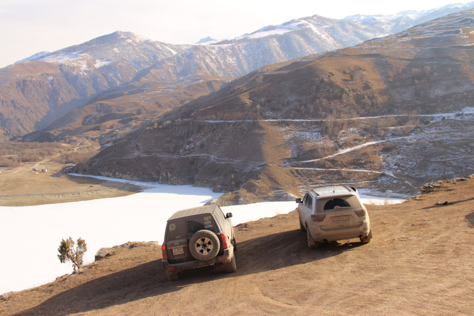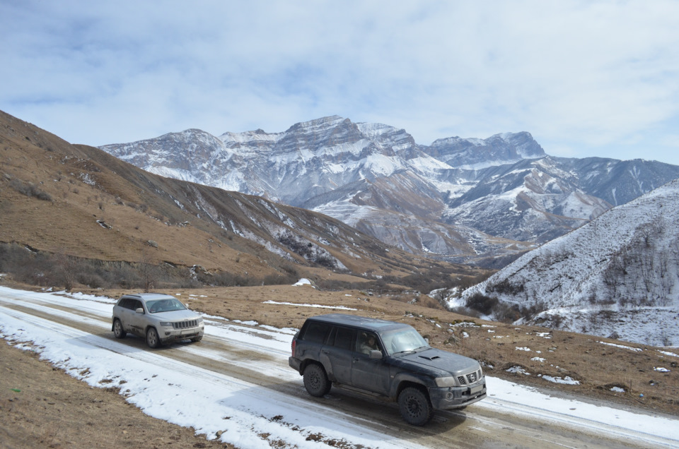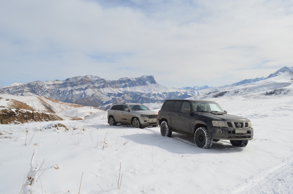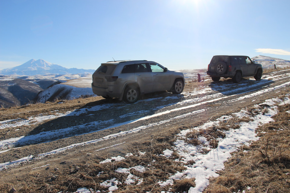 Поездка была в два экипажа, две машины Nissan Patrol и Jeep Grand Cherokee, обе машины стандартные. Nissan на грязевой резине Jeep на зимней нешипованной. Экипажи — Взрослые 4 человека, Дети — три человека. Маршрут рассчитывали на 4 дня, 2 дня — доезды, 2 дня радиальные маршруты с базированием в г. Пятигорск.