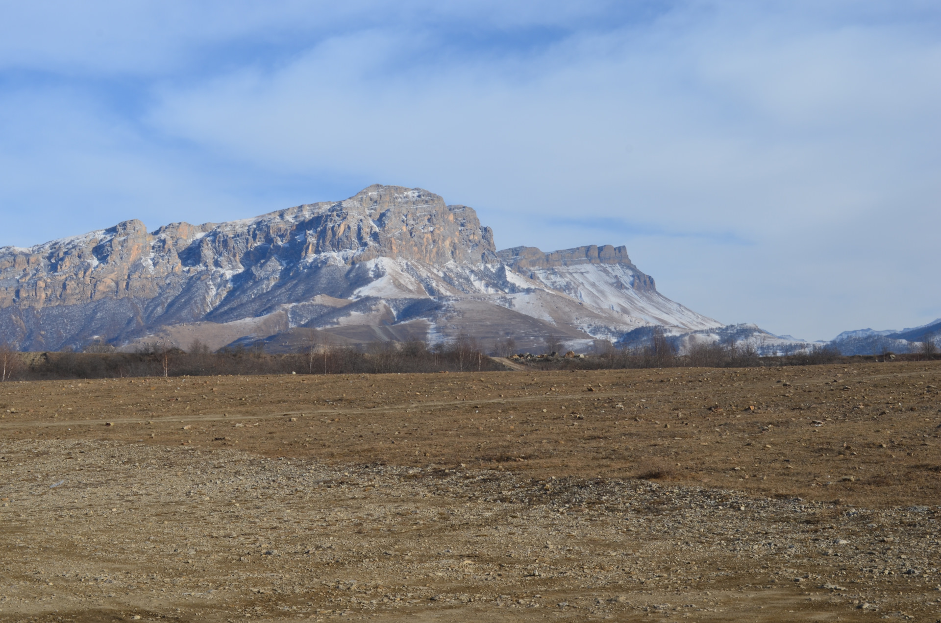 Проведя на водопадах где-то час мы выдвинулись дальше, дорога уходила плавно в горы, снега в округе было не так много нам предстояло пройти около 12 км по грунтовой дороге. Практически сразу после стоянки у водопадов мы встретили местных ребят на ТЛК 80, они ничего особо сказать нам по состоянию дороги не смогли, но посоветовали попробовать пробиться.