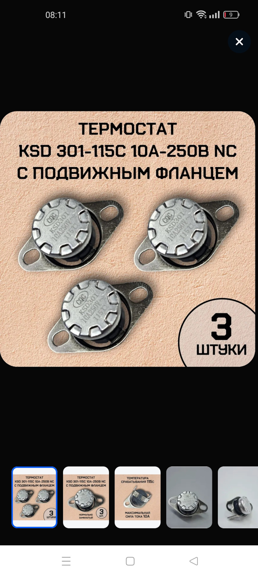 термопредохранитель на 200 град, терморегулятор на 100 градусов.