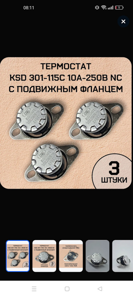 Купил в chip&dip термопредохранитель 250V 15A Tf200°С