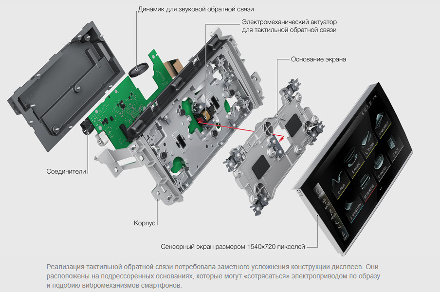 Это обычные сенсорные панели, которые сдвигаются и чуть вибрируют, имитируя физическое нажатие.