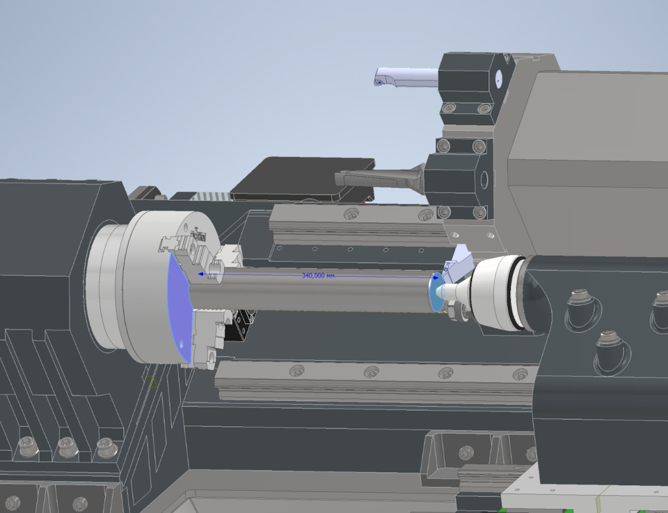 длинна до заднего центра 340мм с учетом отвода инструмента есть свободный ход.