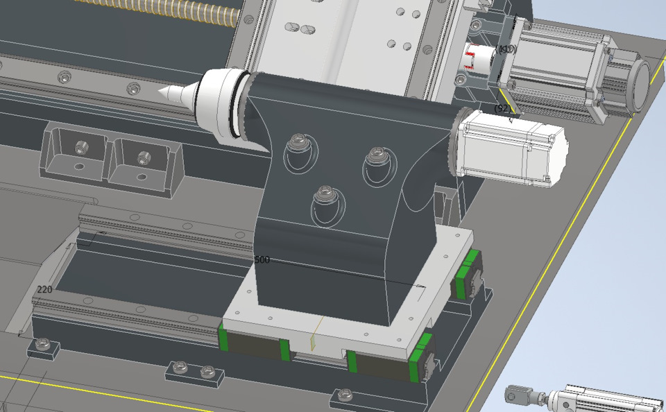 остается вопрос как этим управлять. подкат бабки и выдвижение пиноли. гидравлику заводить не хочу. получается сразу бюджет в рост на 50-100к. а воздух требует мольные длинны цилиндров. и второй вариант это двигатель. сервы с тормозом.
