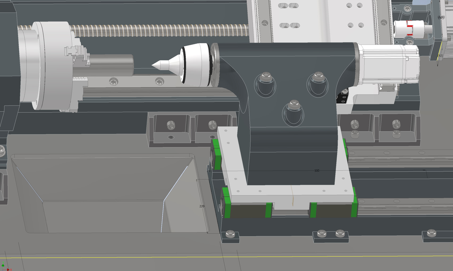 Но заднюю бабку рекомендую сделать не гидравлику, а на отдельном серводвигателе с швп, она будет в разы быстрее и в разы жёстче, а также можно будет регулировать усиление поджатия.