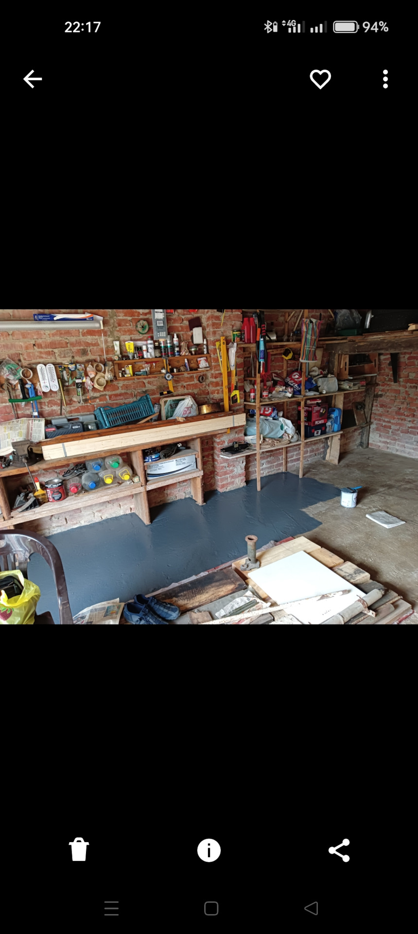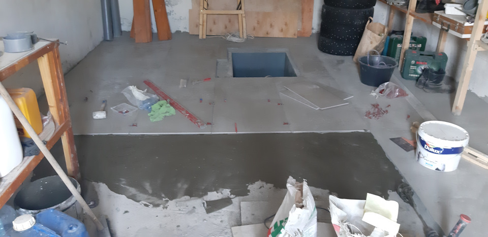 я ничего не делал, в тапочках ходить не собираюсь, это гараж в котором паутина, пыль на стенах и на полу должна быть, перед гараже насыпал штукатурки и прочего мусора чтобы грязь не завозить. а ровнять стены, красить пол, ставить хбокс, диван и т. д. не буду и вам не советую.