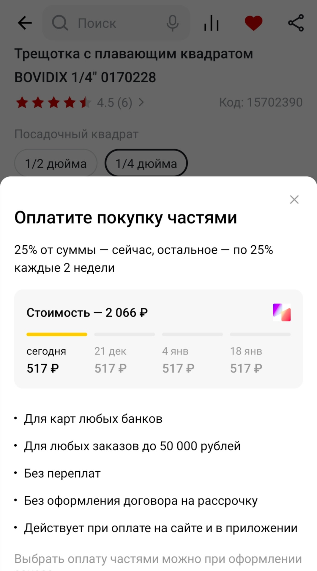 Но купил с оплатой частями, во все инструменты, как рассрочка, но без переплаты, ещё и по акции.