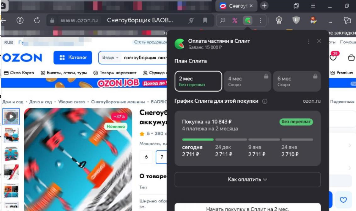 В браузере Яндекс тоже можно покупать в рассрочку не только во всехинструментах, а и на озоне, вб и прочих магазинах и гасить рассрочку раньше срока