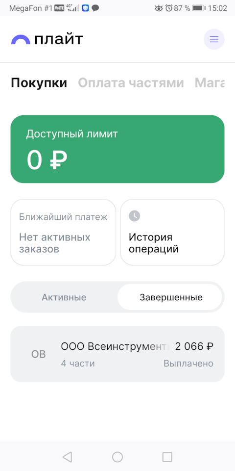 Зашёл на сайт плайт ру, рассрочка выплачена, заказ автоматически ушёл в архив.