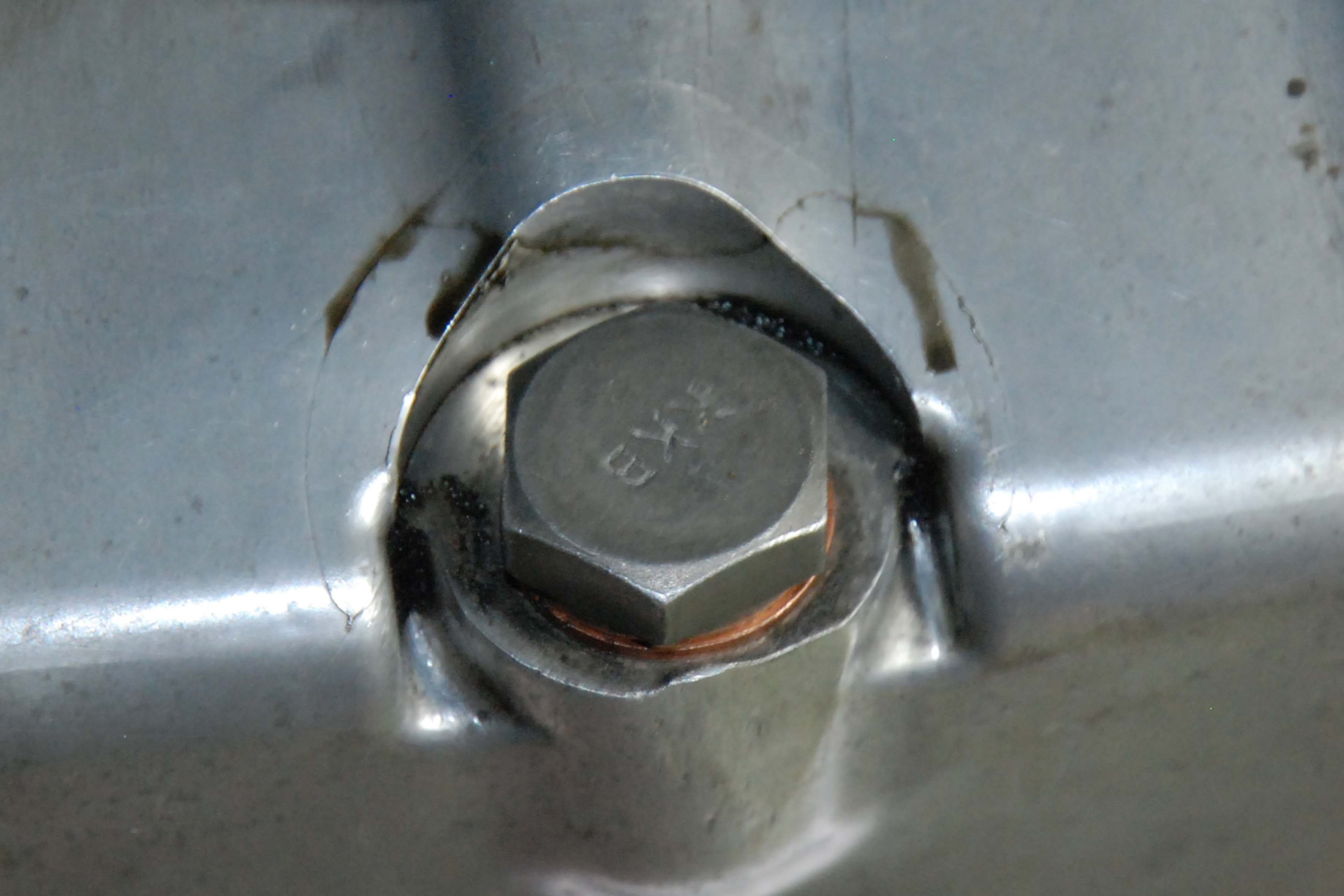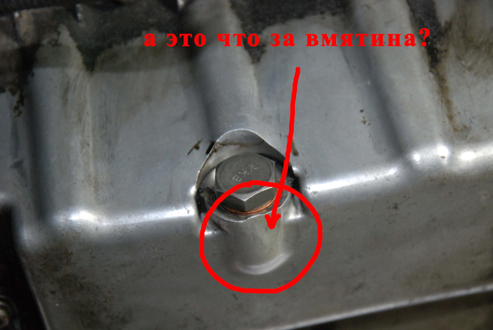 Загуглил трещины поддона от перетяжки пробки сливного отверстия. Такого характера, как на моем фото, микротрещин от переусилия ключа не обнаружил. Лопается по резьбе. Удар попадает в это место, т.к. это самая нижняя точка поддона, да ещё посередине авто. Колея разбитой дороги не позволяет вырулить на такую же разбитую встречку.