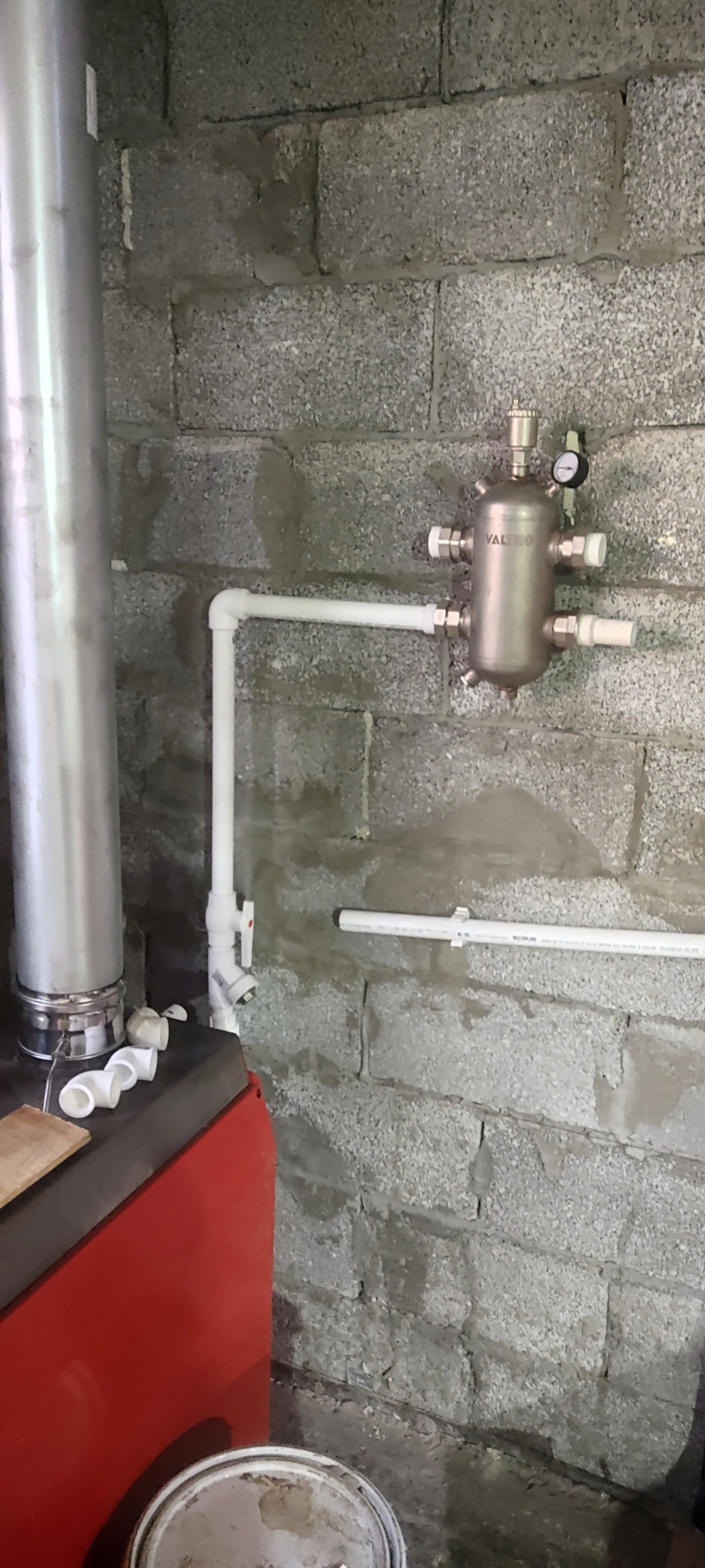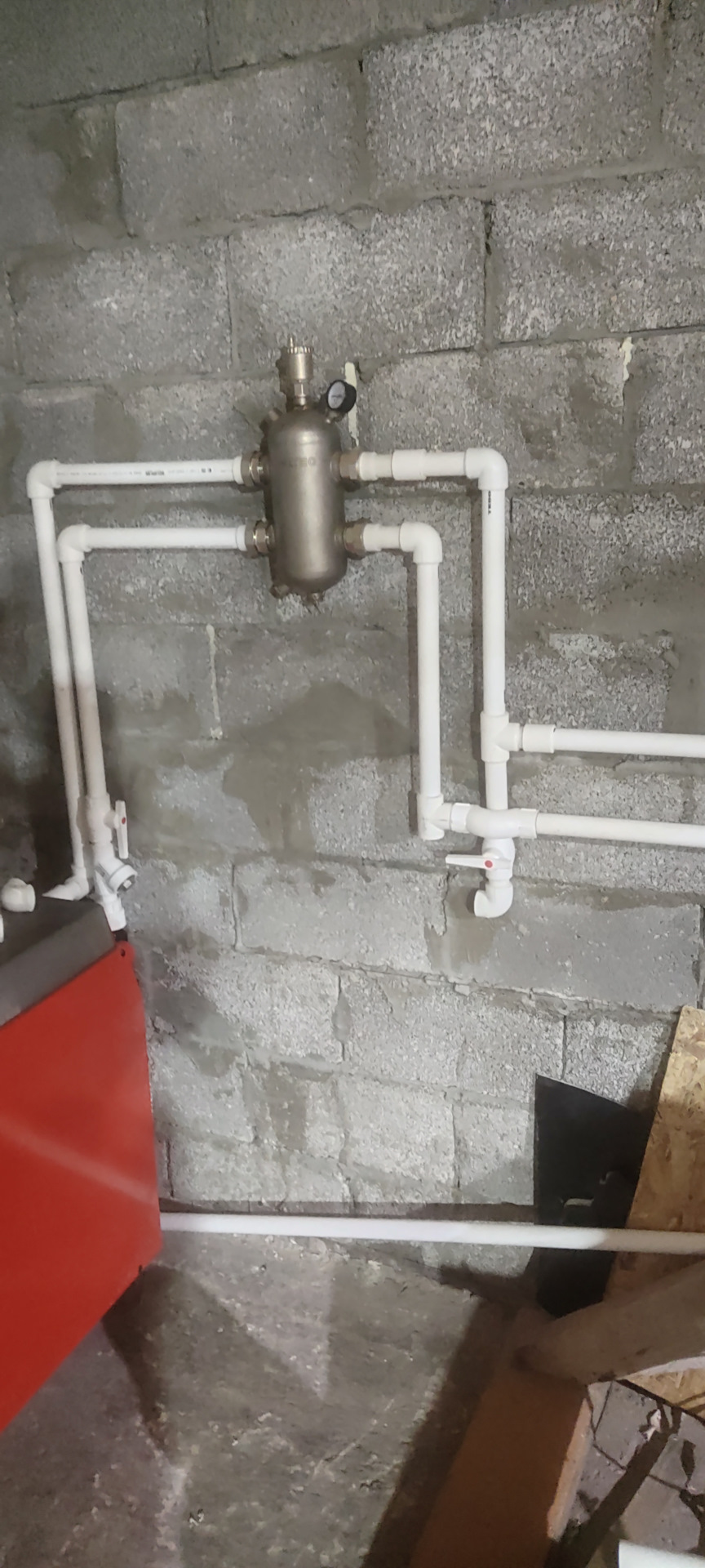 Дровяной котел обвязанный полипропиленом, и спасительная гидрострелка.
