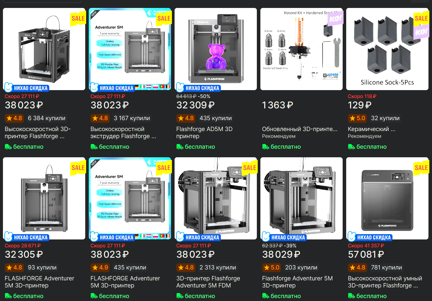 Если к нему докупить закаленное сопло за 2000р (а на Али сейчас вообще за 1500р), то можно даже композитами печатать (я Ультраном пробовал), а если еще и лист из нержавейки (700р что ли) — то и нейлоном (на клее). Он отлично печатает, и на него нет никаких апгрейдов практически, что исключает ненужные траты денег в будущем! 😁