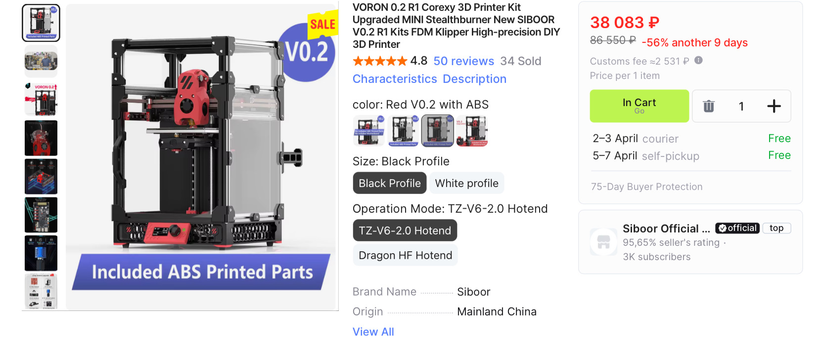 Стоит 38 000р (полный комплект с печатными деталями), но это будет закрытый, топовый, и очень быстрый принтер с возможностью поставить любой фидер и хотенд. Конечно, если ты сможешь все это собрать и настроить.