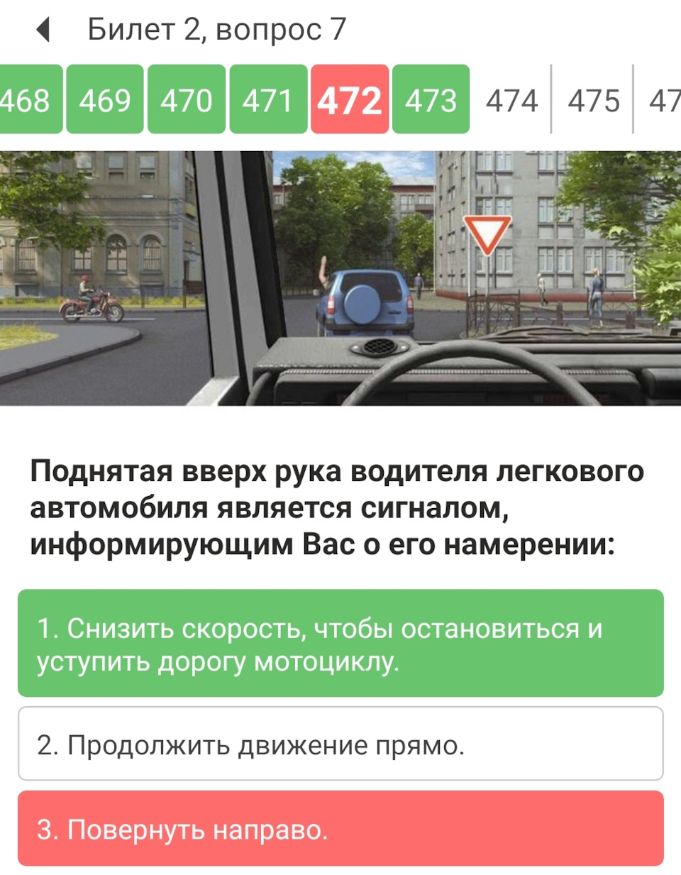 Через два месяца решения карточек у меня стал появляться реальный рвотный рефлекс при воспоминании о них. Не верите? Физическое отвращение до блевотины… Но надо… В какой- то момент мне стало пофигу, я стал делать скрины на телефон, пытаться выучить или запомнить цифры светопропуская стёкол, остаток протектора, длины тросов, сцепок, время реакции, промили, расстояния до жд путей, и кучу хрени, которая мне никогда не нужна была. Вопросы некоторые сквозили дебилизмом. Например вы видите легковой автомобиль, из которого торчит согнутая в локте рука. Ну да, хочет направо повернуть. Похожая карточка и опять рука согнутая. А если приглядеться, то она согнута немного под другим углом, но никак не прямая и это оказывается мы хотим остановиться.