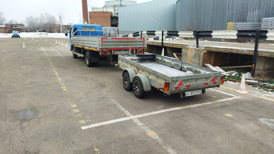 Не правда, мне с шаландой даже проще чем она длинней, с двухосником с коротким дышлом труднее, сначала ты его вообще не видишь, а потом он уже сложился почти. Вот на этом уродце сдавал, правда если на нем сумел сдать уже пофиг что таскать))).