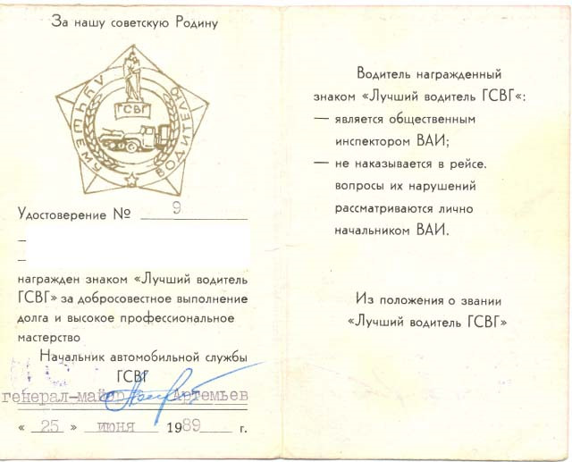 PS. На соревнованиях водителей в Германии я честно получил значок Лучший водитель ГСВГ, решая карточки.