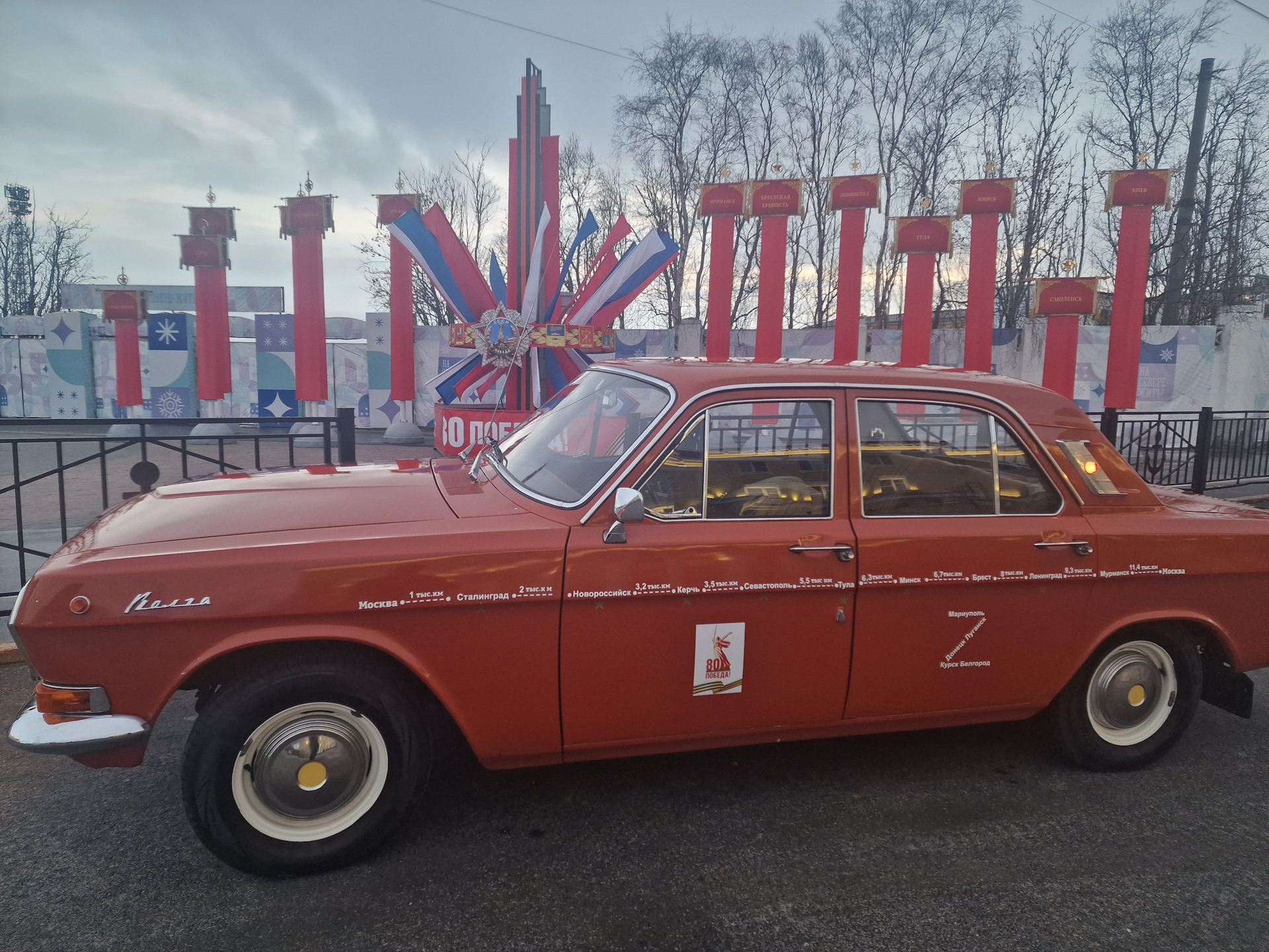 Так возникла цель проехать все города-герои, чтобы их звезды сияли на борту Волги во время ретропробега "Круг Победы" в Москве 10.05.2025.