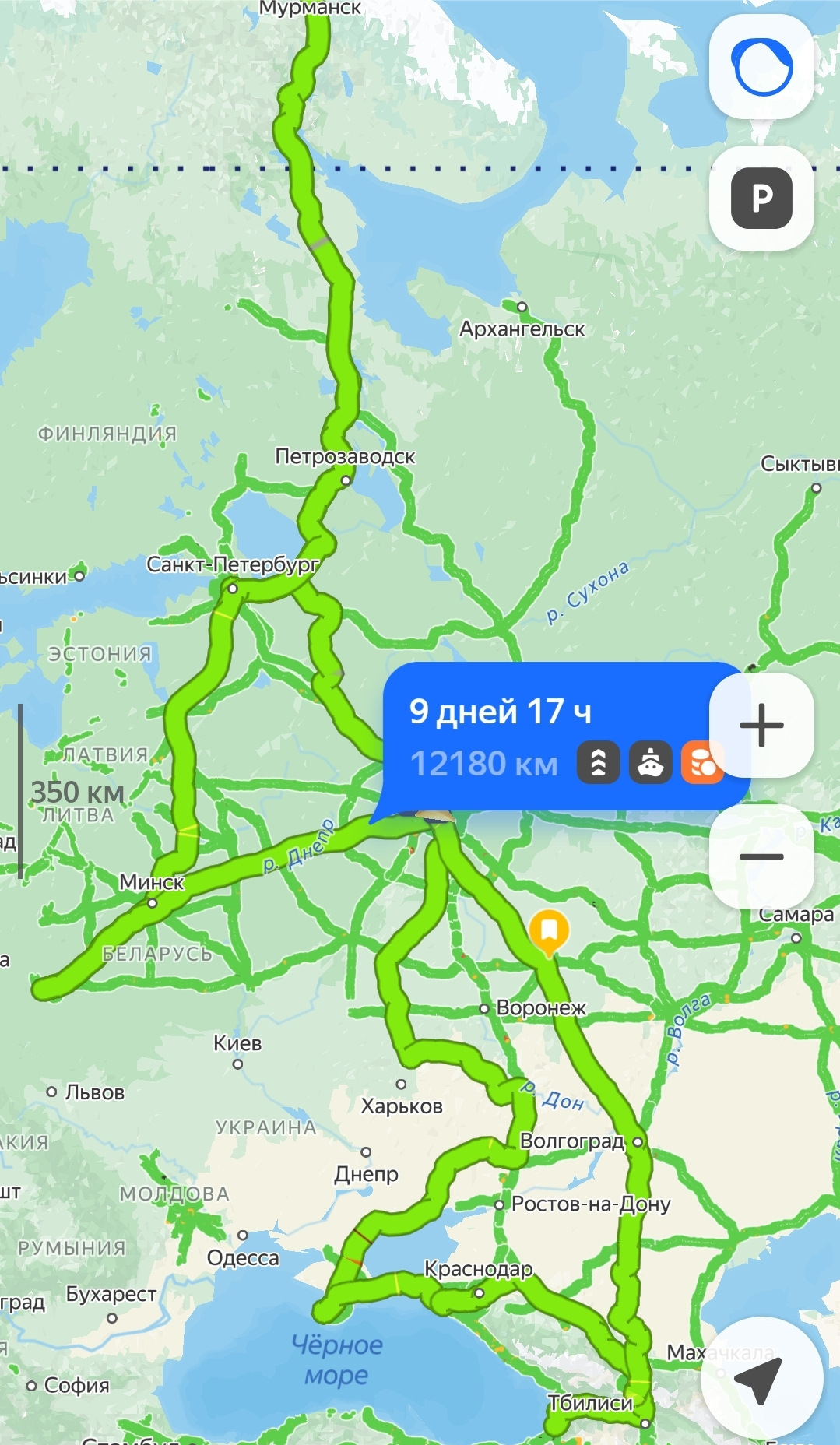 С 22.04 по 09.05 пришлось преодолеть более 12 тыс. км.