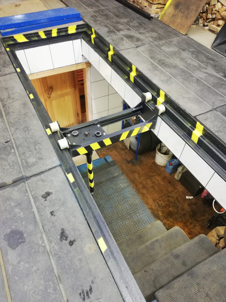 Вот так подстрахуй работает! А еще поперек ямы на роликах перемещается!