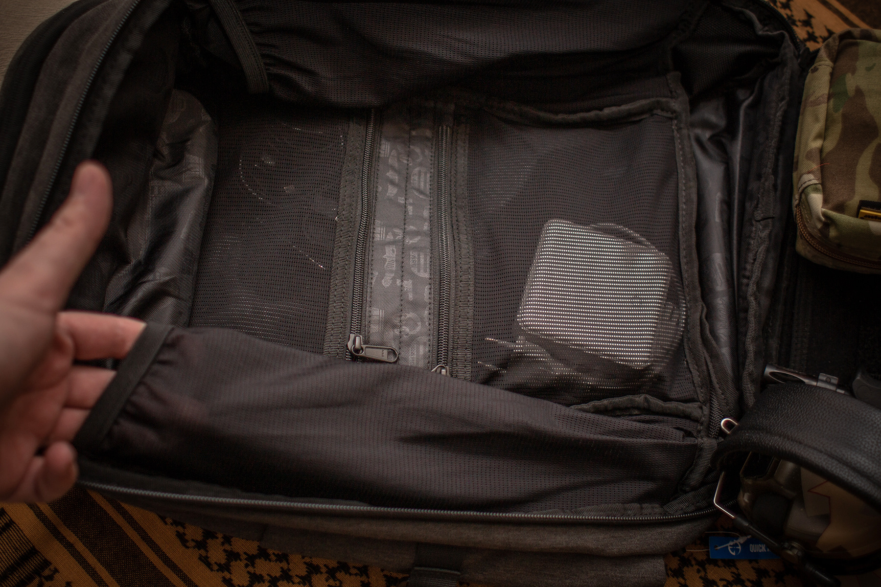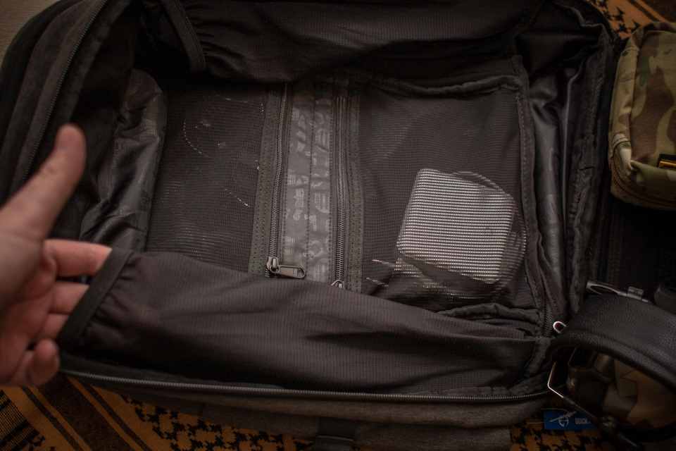 Основное — со стороны жесткой спинки имеет большущую велкро-панель для тонкой душевной организации — хошь оружие размести, хошь медицину, хошь органайзеры под одежду для командировок.