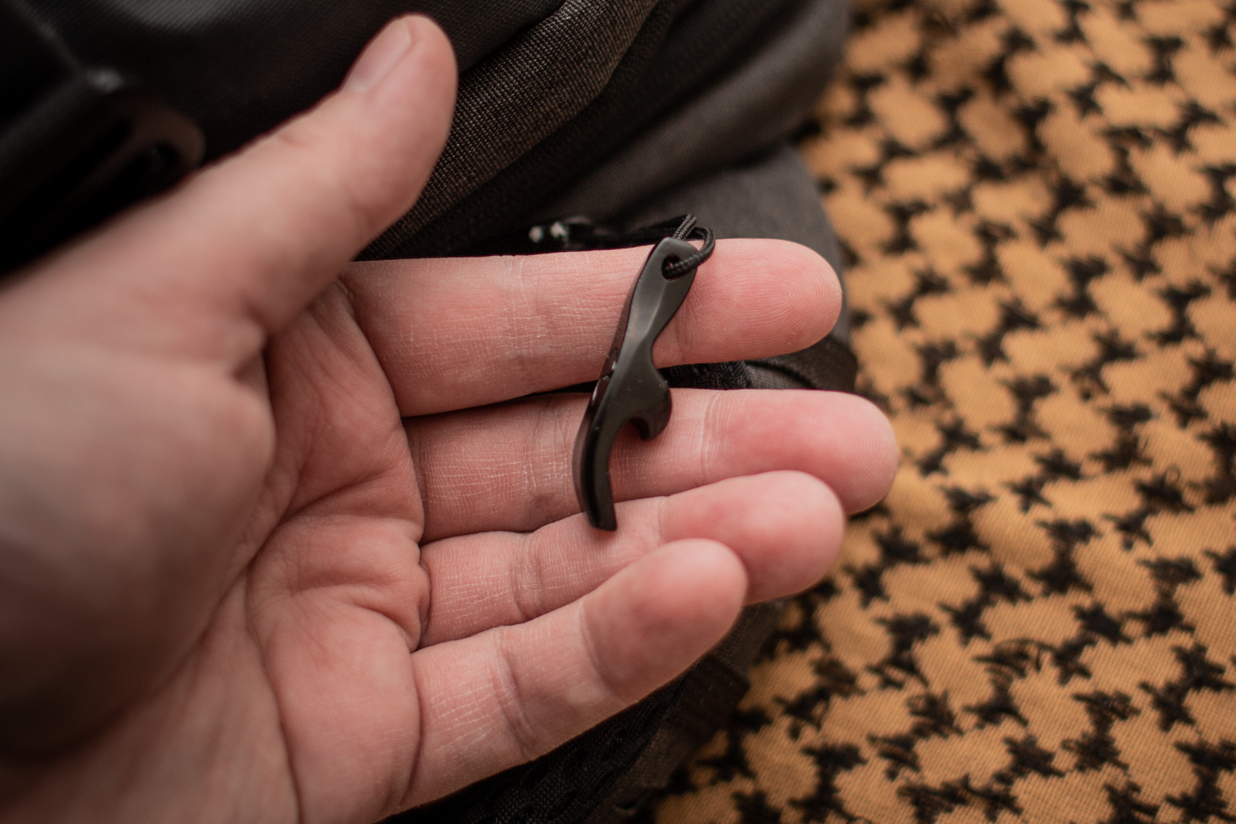 Один из пуллеров молнии основного кармана- стальная открывашка для бутылок, что приятно.