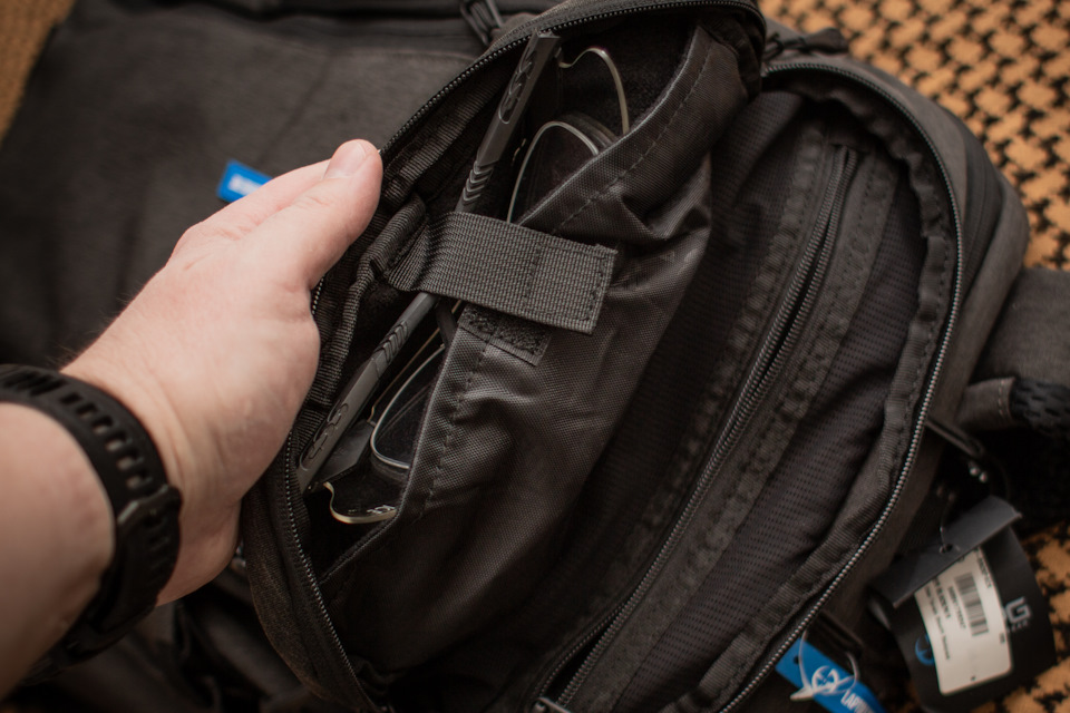 Верхний карман рюкзака спроектирован под очки и мелочевку. Лично мне хотелось бы его видеть чуть глубже, чтобы разместить там наушники, но нет.
