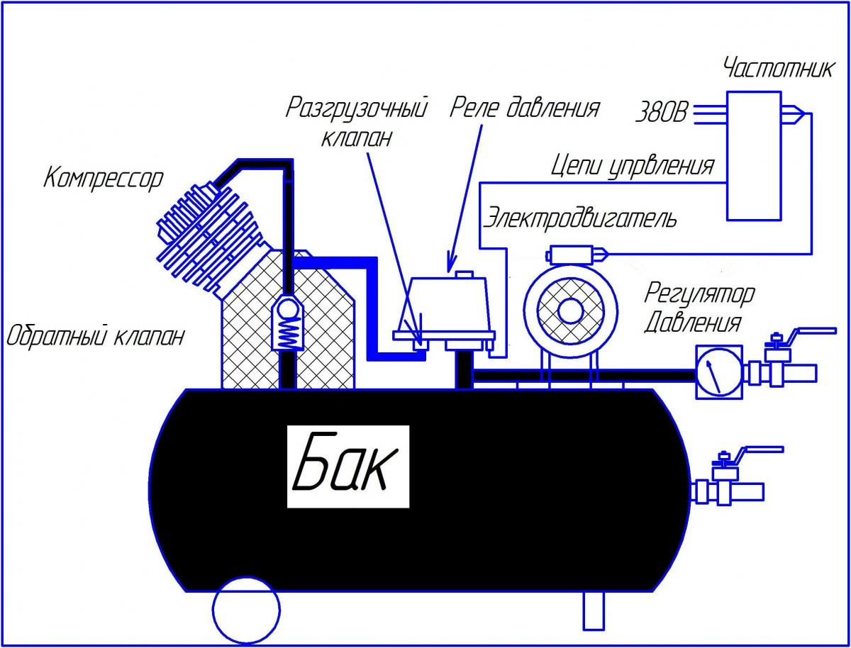 В теплую погоду- запускается не зависимо от наличия воздуха в ресивере.
