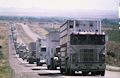 *Мощный конвой грузовиков, вздымающих тучи пыли, движетс…