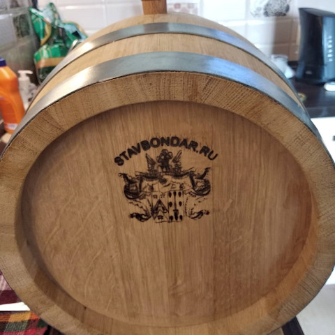 Вчера слил с бочки свой первый бурбон. Заливал я его 15.12.2018 года, в объеме 6.3 литра, крепостью 43 градуса.