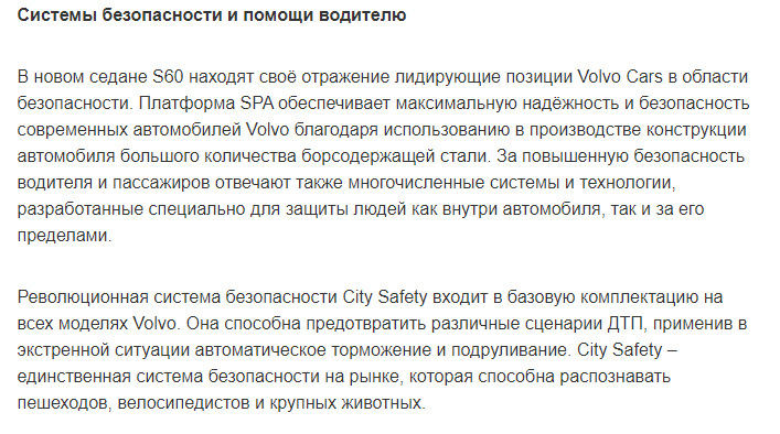 2) Volvo S60 — описание автоторможения для покупателей и прессы — впервые в мире, блаблабла.
