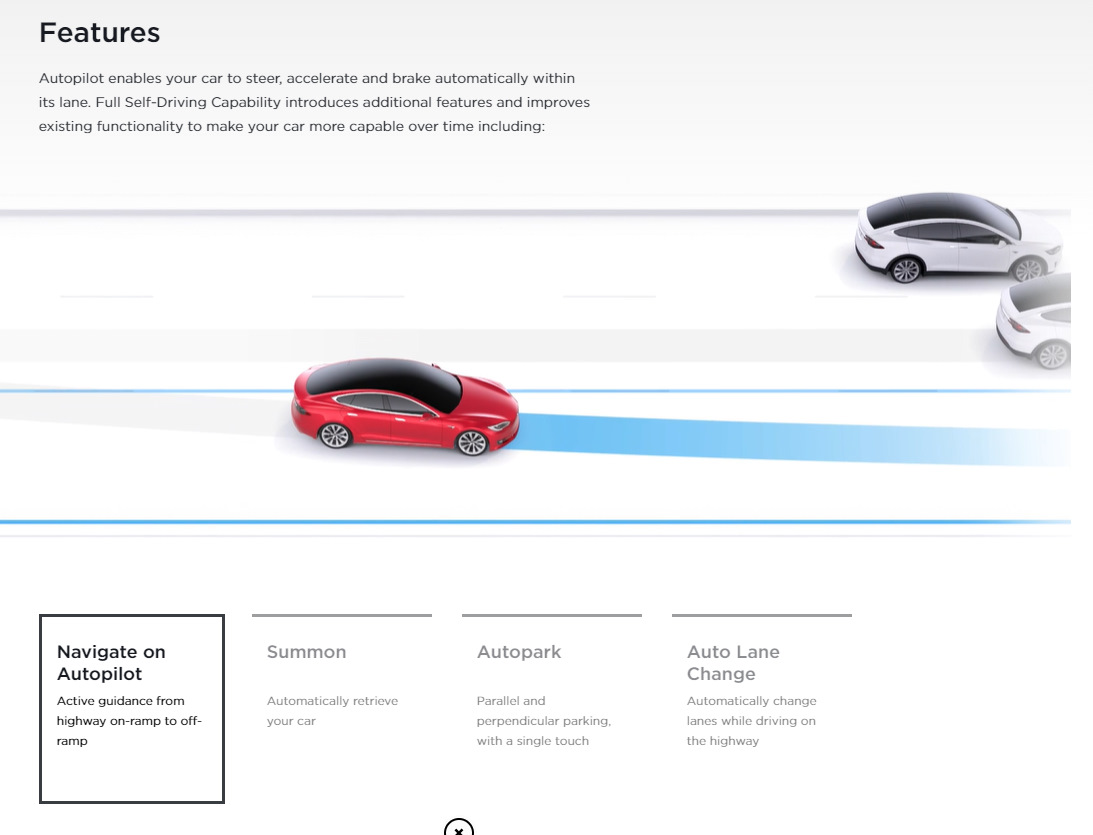 1) Тесла Модель S: описание на странице модели — Автопилот позволяет автомобилю поворачивать и тормозить самостоятельно.
