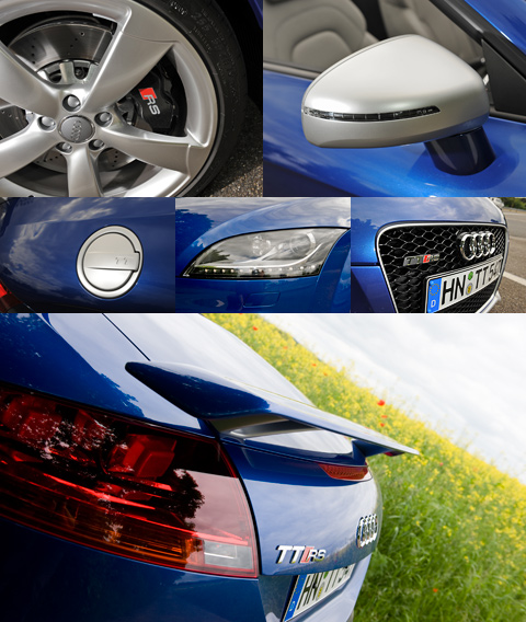 На промофотографиях белое купе смотрится изумительно, но живьём... Покрашенные серебрянкой спойлеры-крылья, двухцветные колёса — всё это сочетается с элегантным кузовом TT не лучше, чем спортивные штаны с лакированными туфлями. Агрессивно? Выпендрёжно. И эта огромная пасть. Вон у синего кита не меньше, но питается он планктончиком. Может, и купе TT RS не так страшно, как кажется?