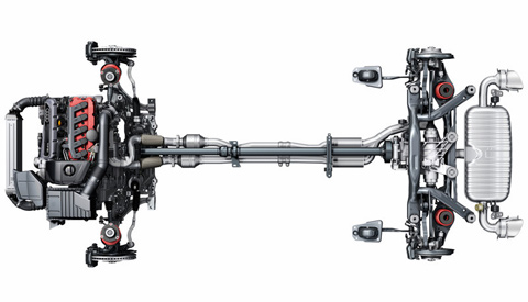 Кузов TT на две трети алюминиевый — это позволило скинуть около центнера по сравнению с полностью стальной конструкцией. Тут неплохая развесовка: ведь весь передок — из крылатого металла. А более адекватное распределение массы по осям обеспечивает нелёгкий задний редуктор полноприводной трансмиссии с муфтой Haldex. И TT RS укладывается в полторы тонны даже с тяжёлым(183 кг — на 30 кило больше, чем у TTS) пятицилиндровым двигателем.