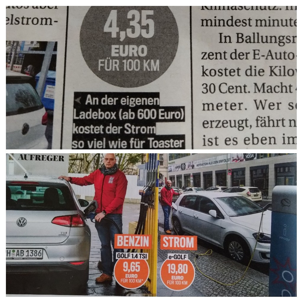 Вот пример во сколько обходится заправка и зарядка на эл.Гольф и Гольф ТSI на общественных заправках. От домашней розетке будет дешевле 4,35€ + от 600€ зарядное. Так что через 7лет экономия 7-8т€ для ДВС по прежнему актуальна.