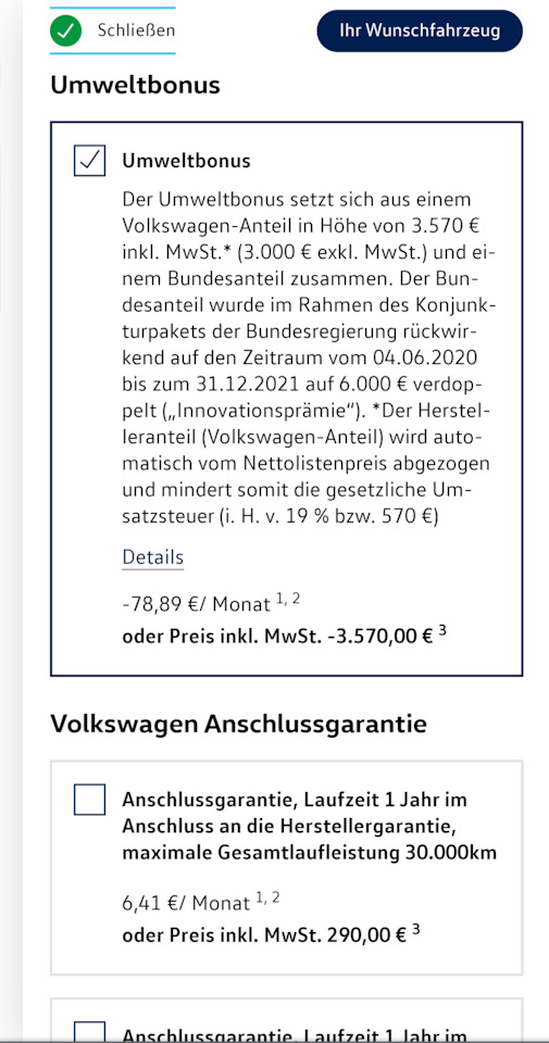 Это бонус от фольксваген, к нему ещё 7000 бафа и вот вам -10 тыс будет. 9480 евро если быть точным суммарный бонус от покупки полностью электронного авто до 31.12.2021 и более того уже предполагается продление.