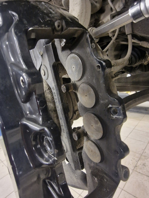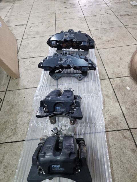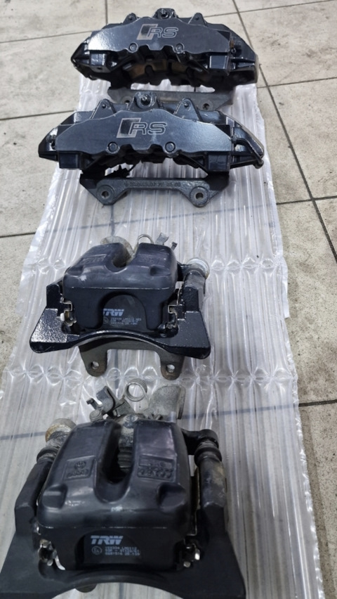 Родные чёрные 8ми поршневые суппорта не особо выделялись, захотелось красные)))