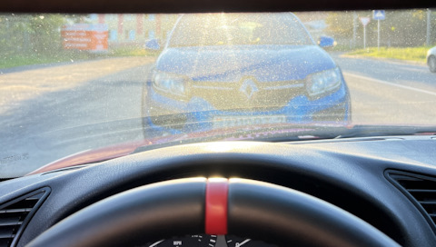 В один из выездов на трек-день была отличная солнечная погода, однако, это оказалось проблемой, так как стекло было уже настолько отпескоструено, что блики мешали виде…