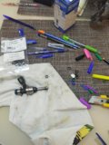 Три клипсы, три шурупа, отстёгиваем фишку и он у нас в руках. Разбираем мотор и видим: