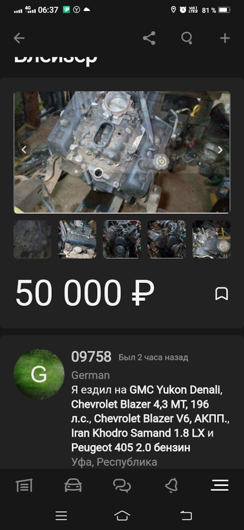 Доброе утро всем сегодня захожу в отдел барахолка на Шевроле блейзер и что я наблюдаю снова этот Герман продаёт двигатель ведать не всех ещё обманул куда смотрят наши админы Драйв2 пора его вычислить…