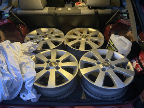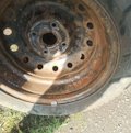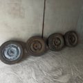 С машиной достались старые шины Yokohama 195/55 r15 (2 баллона живые), ржавые штамповки и коцаные колпаки.