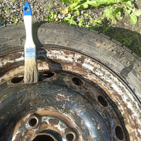 Чуть не забыл. Ещё в июле пока было жарко покрасил зимние штампы. Котрые были куплены по бомжу. Таким же образом и окрашены моими руками. Кисточкой. На какие то хватило даже грунта антикоррозионного…