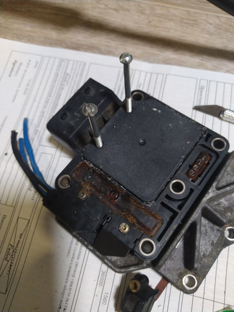 Ещё летом обратил внимание, что вентилятор задней печки стал работать только на максимальной скорости. Вытащил резистор и увидел две отпаяннные лапки.