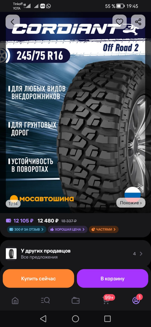 Прикупил шины Cordiant off road 245/75/16, хоть по грязи сейчас можно нормально поездить, а не на месте на шоссейке стоять с крутящимися колёсами 🤣🤣🤣