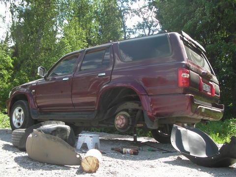 Пока машина строиться, на данный момент поставлены передний и задний силовой бампер, лебедка 9000 с синтетическим тросом, переделана торпеда, задние аммы умерли, вместо родных за 2500 руб. поставил о…