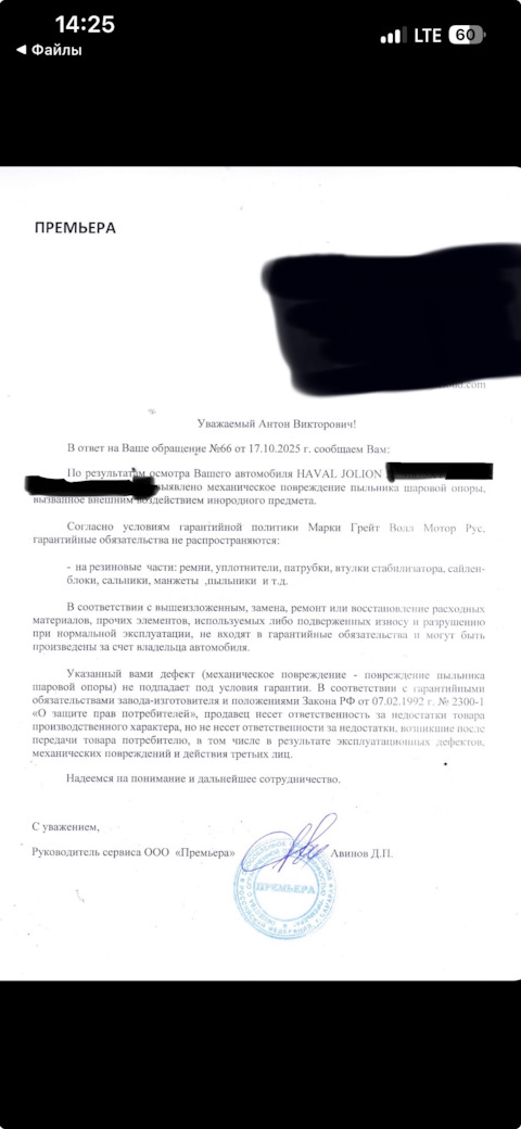 Позвонил в сервис, записался на завтра 14.11.2025.