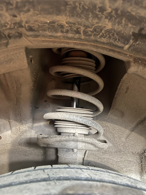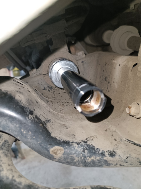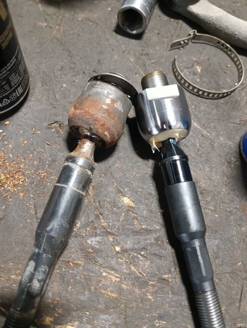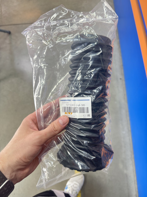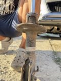 При установки втулки обнаружили, что правая стойка потекла. Тут же в автотрейде были куплены две новые передние стойки и пыльники. Один пыльник у меня лежал новый в гараже, второй купил.