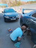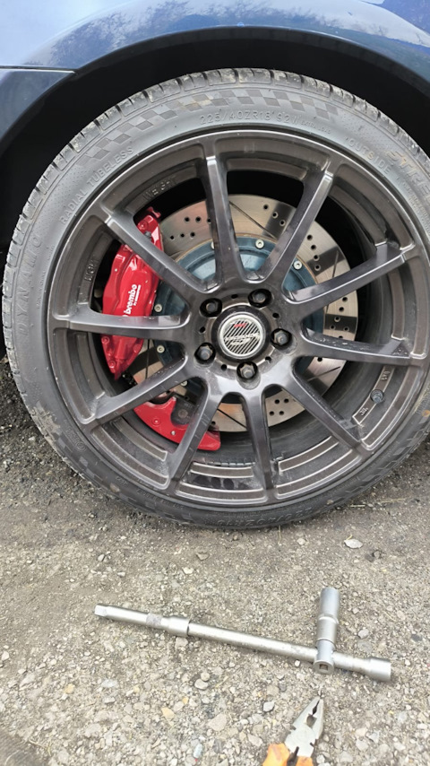 Смена колес по сезону, колеса те же, зимний комплект на тупесах и мишлене, ранее снятая нештатная распорка поехалаа в порошковую покраску, так как видок у нее был печальный. К слову за 5 лет эксплуат…