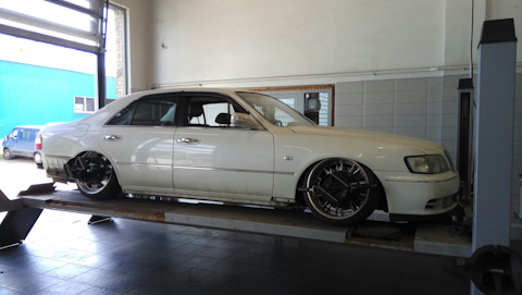 Забегая вперед скажу — вопрос с задними колёсами стоял таким образом, что срезание стоковых арок было неизбежно. Поэтому прежде я поехал и выставил схождение, что бы делать всё на готовой тачке сразу…