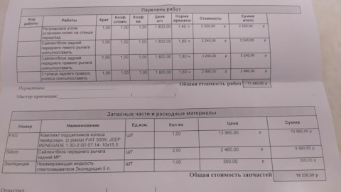 Вернулся с работы и при замене резины поставил проставки на лето, как следствие процедура сход-развал, но меня ждало разочарование от Jeep), в двух местах отказали ввиду надор…